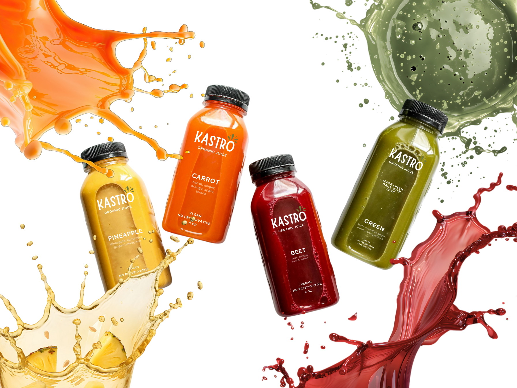 Kastro Organic Juice, founded by DC native Jordan Kastro, was born from a desire to make clean, fresh, organic juice more accessible to everyday life. Jordan reached out to build a brand that reflects her commitment to high-quality ingredients, thoughtful sourcing, and honest wellness without the noise of over-processed juice culture. We partnered to shape a brand rooted in freshness and trust, designed to stand out on shelves while remaining true to its organic promise. The result is a bold, modern identity built to scale across retail spaces and support Kastro’s mission to distribute feel-good juice to communities near and far.